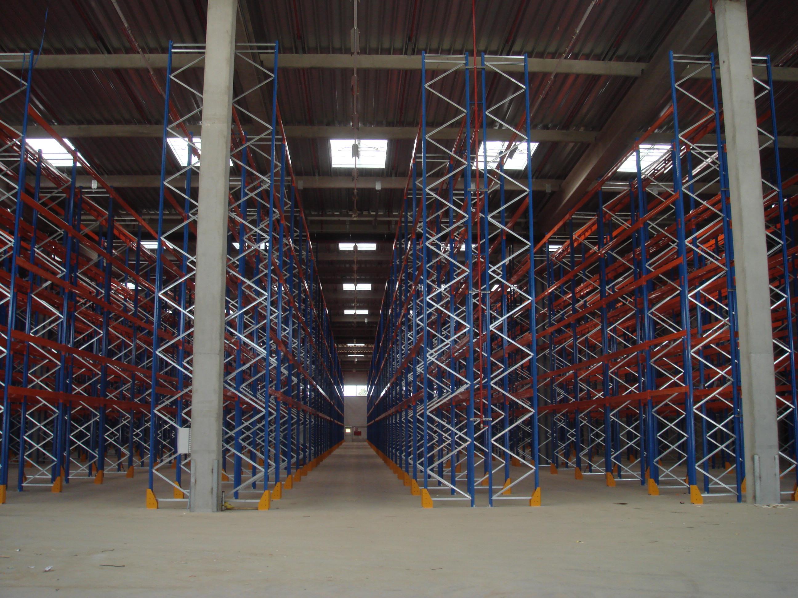1、通常貨物通過托盤、倉儲籠等單元集裝設備整裝后存入貨架保管。 每單元載重一般在4000kg以內,每層通常放兩個單元。